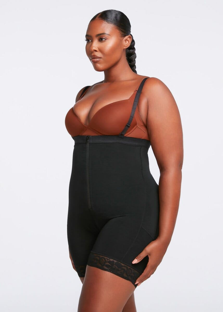 • Modelador de busto aberto com compressão firme na barriga, cintura e quadris